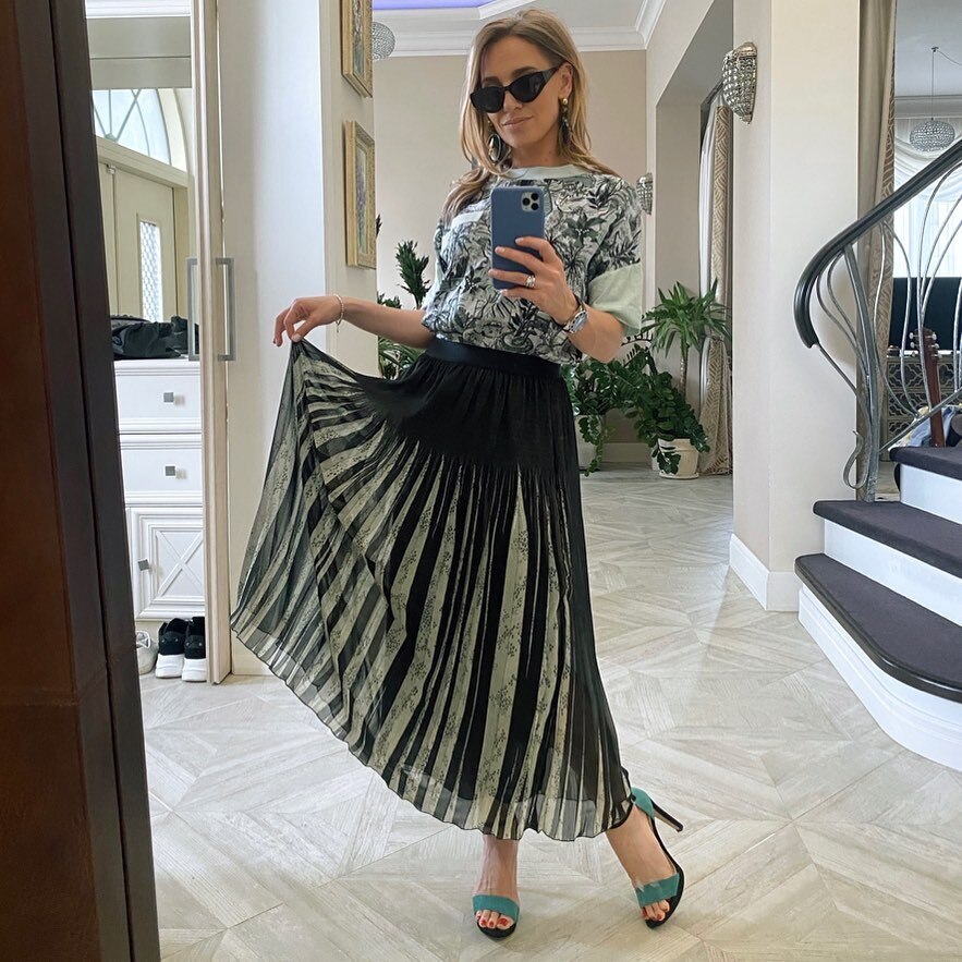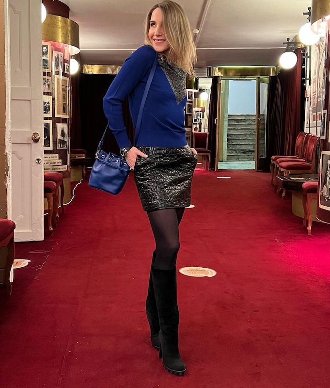Не так давно поразила всех Анна Нетребко, которая надела абсолютно прозрачные брюки и платформы из 80-х в барселонский театр. Не отстает и Юлия Ковальчук: певица выгуляла крошечную мини-юбку из кожи с тиснением под крокодила, добавила к ней сапфировый джемпер с мерцающей деталью. Увенчали образ замшевые ботфорты на брутальной подошве, миниатюрная сумка-кисет в насыщенном оттенке синего и несколько лаконичных ювелирных акцентов.