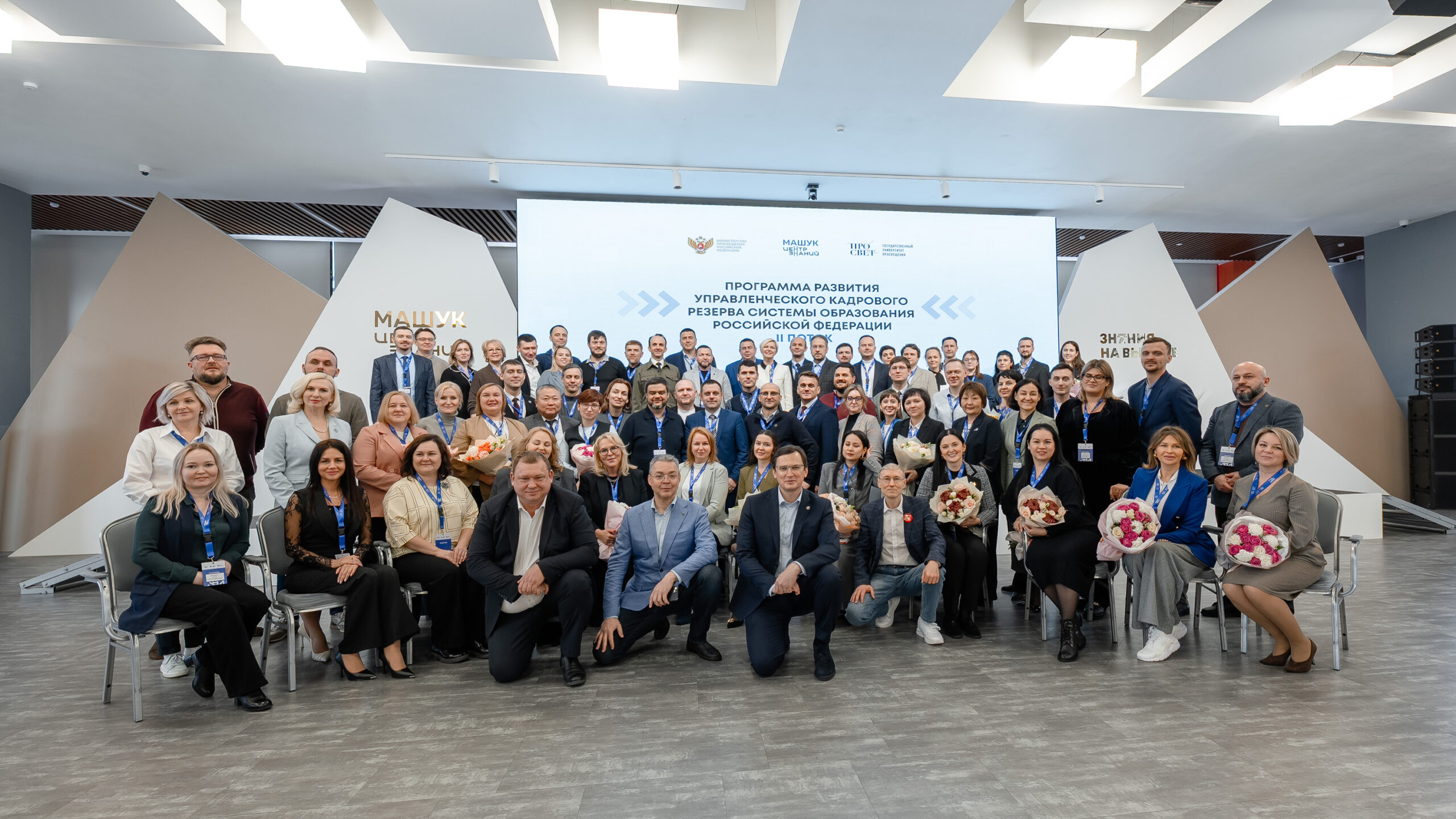 Центр знаний «Машук» запустил первый поток флагманской Программы развития управленческого кадрового резерва системы образования РФ осенью 2024 года. Проект был реализован совместно с Высшей школой государственного управления Президентской академии и Министерством просвещения РФ. В первом потоке программы приняли участие финалисты, победители профессиональных конкурсов и лидеры отрасли. По ее итогам 70 человек из 44 регионов страны разработали и представили экспертной комиссии в составе тематических групп восемь уникальных проектов и получили документы о профессиональном повышении квалификации. Программа стала для участников социальным лифтом. По окончании обучения состоялись первые назначения бывших директоров школ на руководящие должности в региональные органы власти. Главным результатом первого потока стала комплексная адаптация и подготовка действующих руководителей к существующим изменениям системы образования.